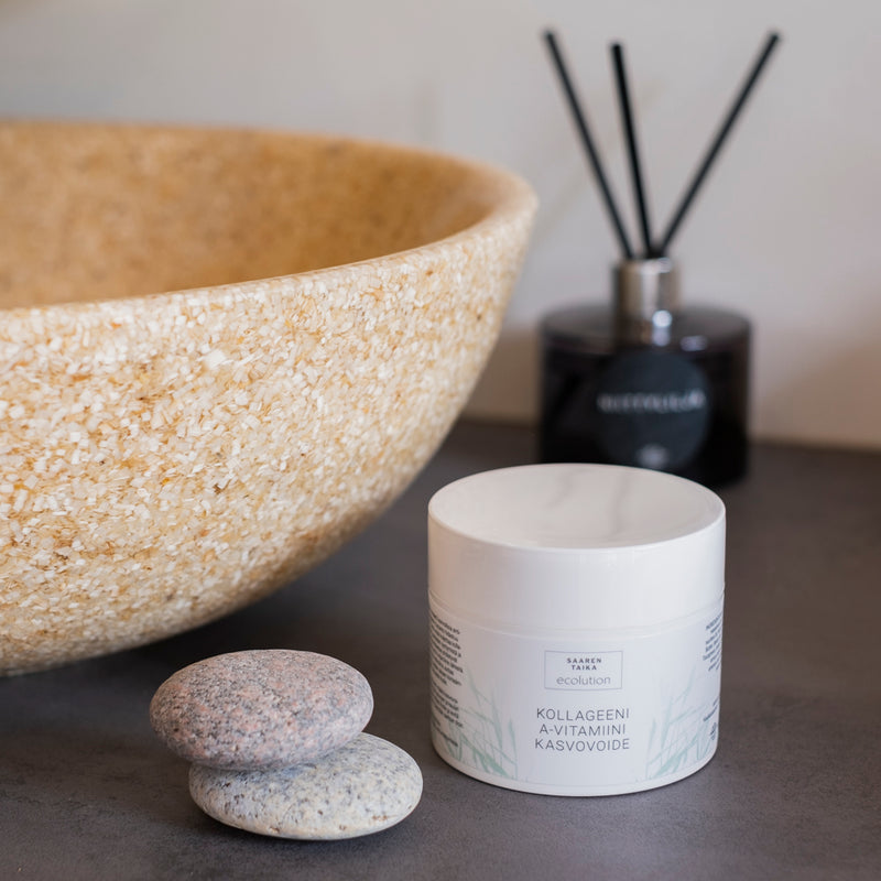 Collagen vitamin A (retinol) ansiktskräm mot finnar, linjer och rynkor. Collagen Vitamin A ansiktskräm är rik på naturliga anti-aging ingredienser som hjälper till att minska uppkomsten av fina linjer och lämnar din hud återfuktad och ger näring.
