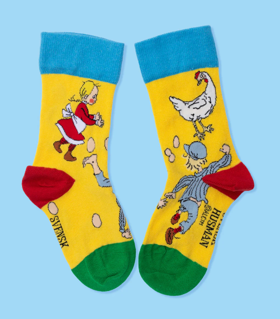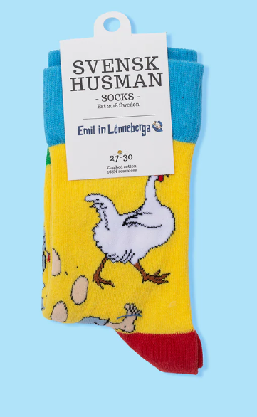 Emil Letar ägg strumpor - en klassisk design med småländsk charm. Dessa strumpor tar dig tillbaka till barndomens magiska dagar, då äventyret lurade bakom varje buske. Med sin unika design och bekväma passform är de perfekta för alla som vill hålla fast vid en del av sin barndom. Så dra på dig en pair och leta reda på äggen!